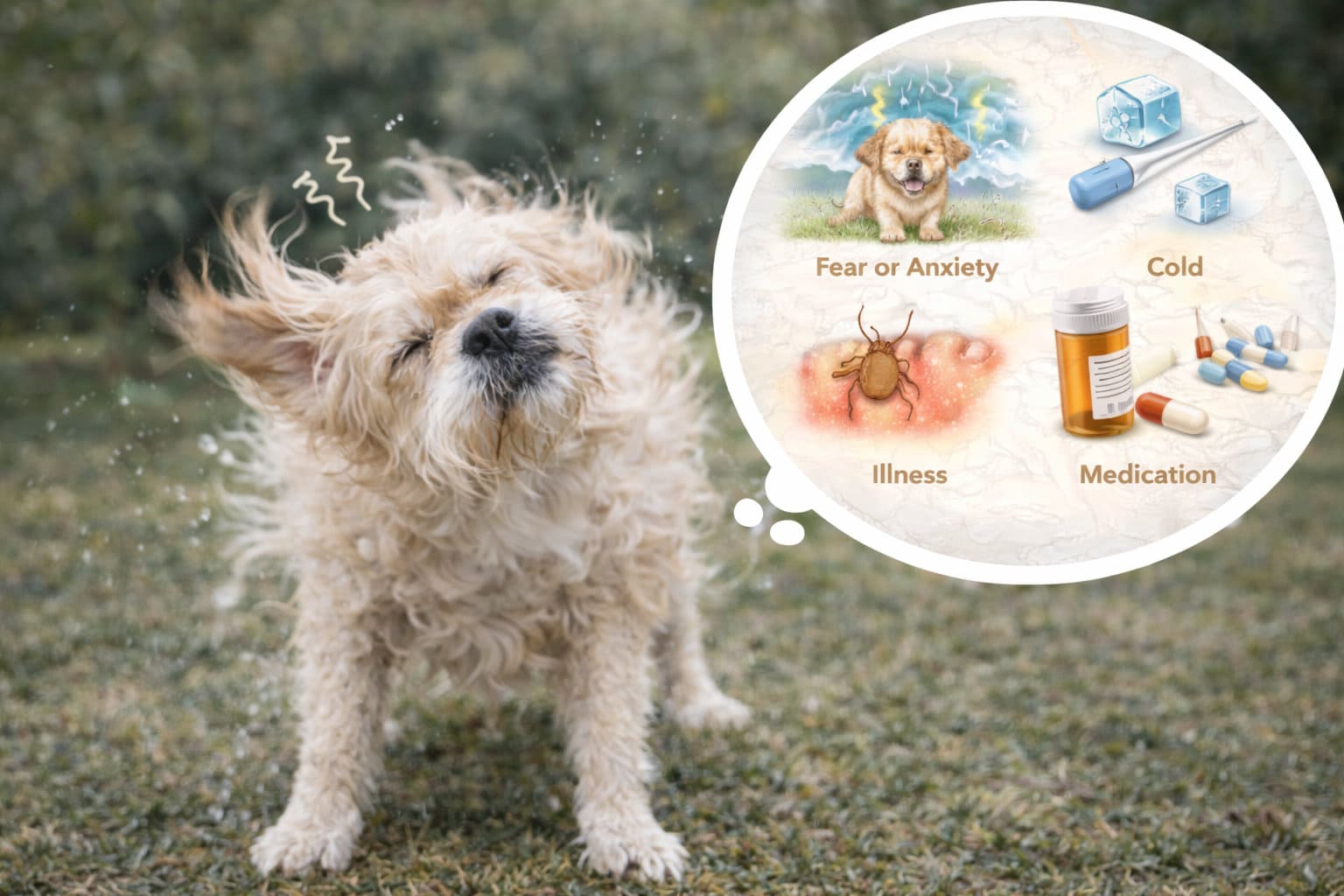 Emotional stress is a very common cause of shaking in dogs. Loud noises, thunderstorms, fireworks, unfamiliar people, or changes in routine can trigger trembling.
